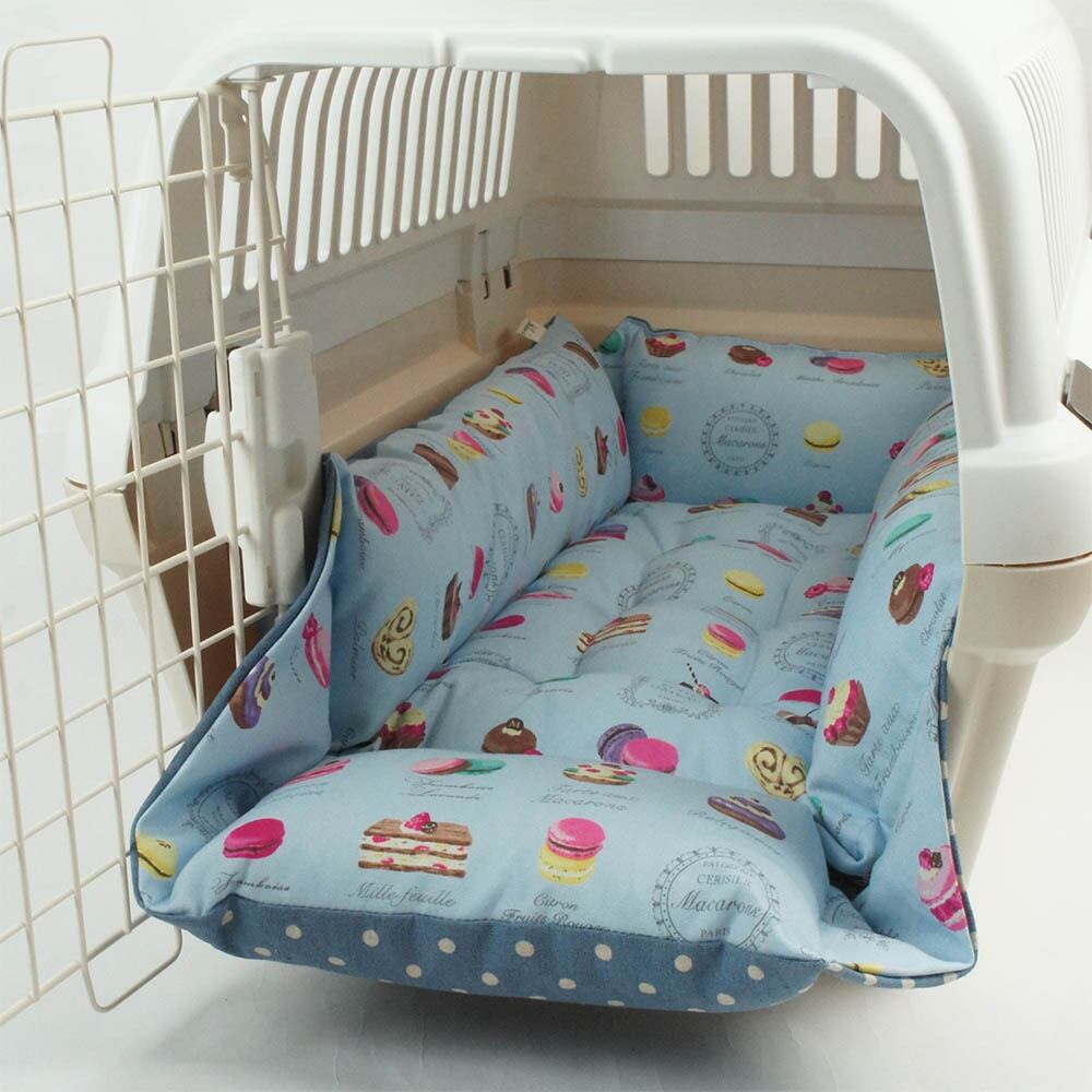 即納 キャリークッションベッド/クレートクッション マカロンブルードット Mサイズ